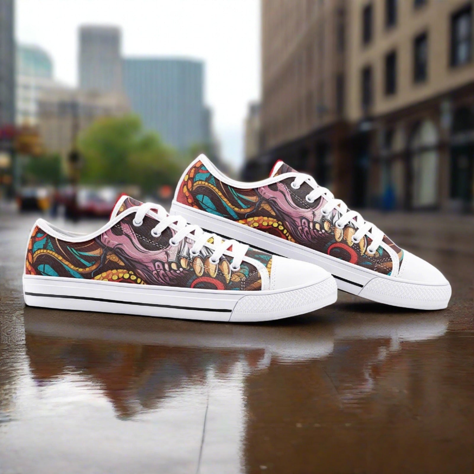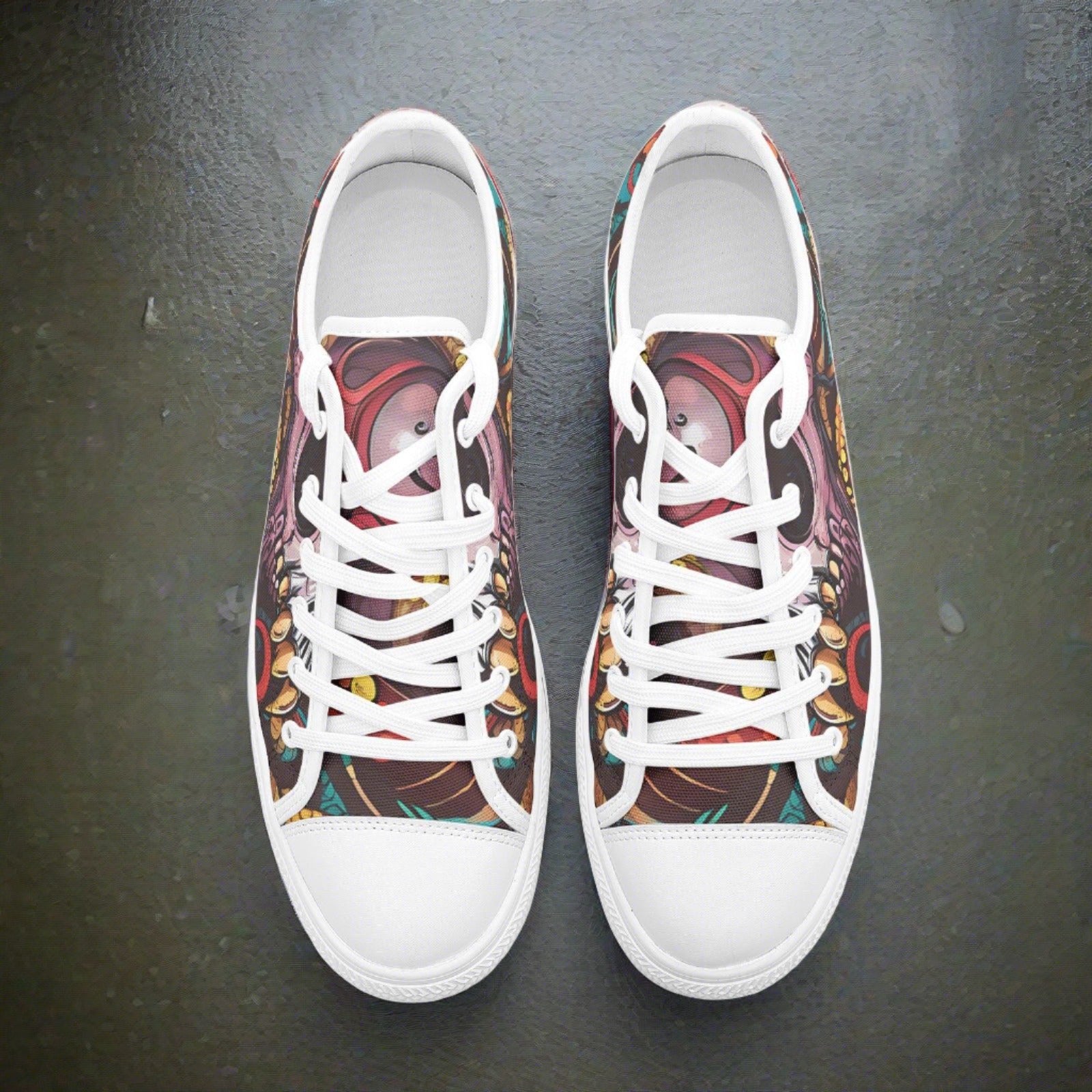 Full canvas double sided print with rounded toe construction.